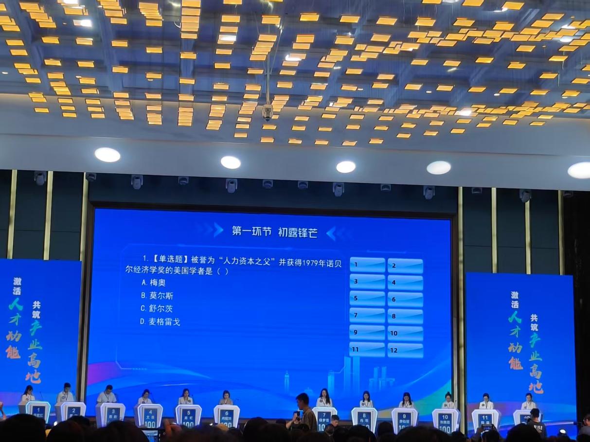 比赛设置“初露锋芒”(理论知识)、“眼疾手快”(抢答环节)、“百舸争流”(一站到底淘汰赛)、“涅槃跃升”(主题PPT展演)四个环节,全方位展现了人力资源管理在理论运用、临场应变、策略制定及场景问题解决中的专业要求。对观摩的学生而言,这不仅是一场赛事,更是一堂鲜活的“实战课堂”。