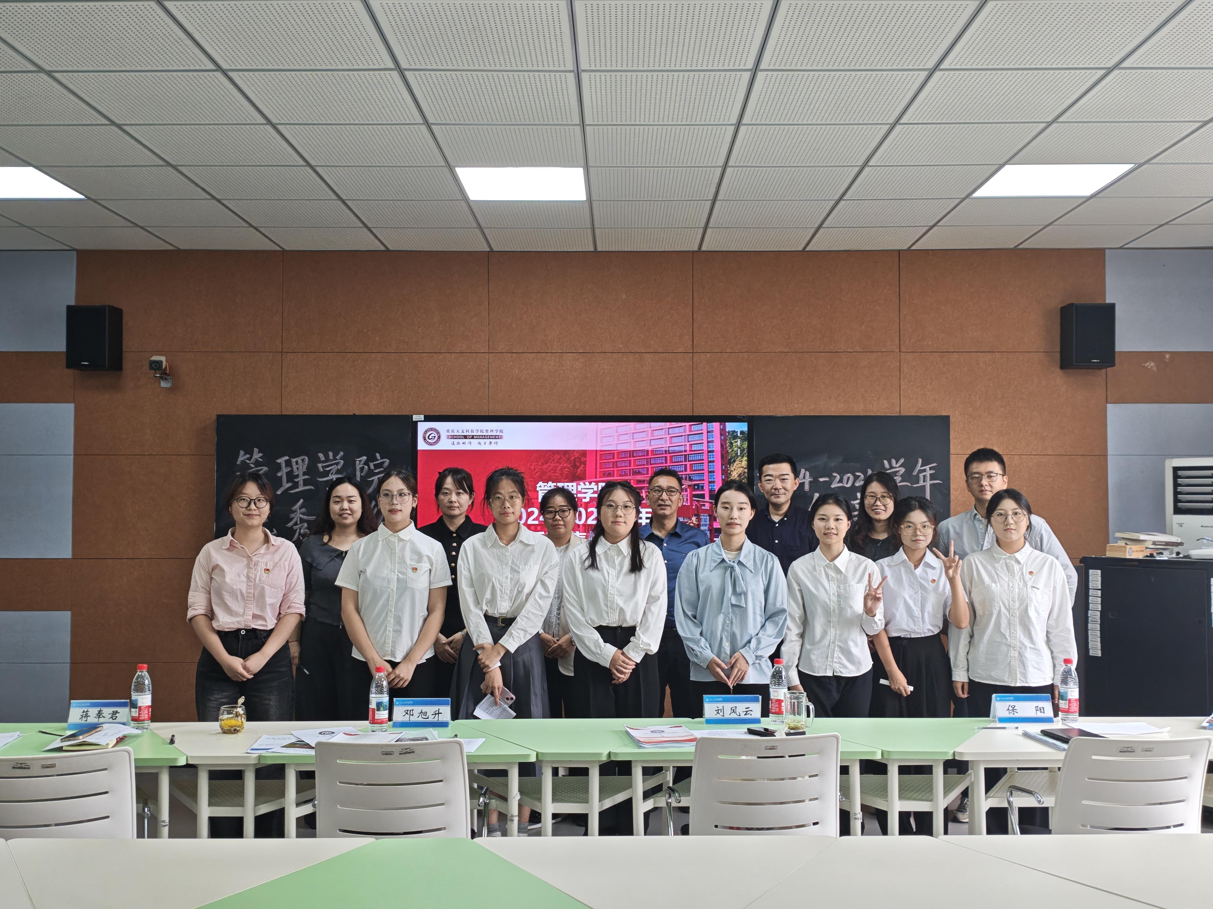 为树立班级建设标杆、激发集体凝聚力,营造“比学赶超”的优良院风,10月12日,学院组织开展2024—2025学年优秀班集体答辩。学院院长邓旭升、党总支副书记蒋奉君、副院长刘风云、党总支副书记张倩、院长助理保阳、团总支书记张杰以及人力资源管理系教师曹俊明担任评委。来自2023级和2024级的八个参评班级依次登台答辩,集中展示班级建设成果与精神风貌。