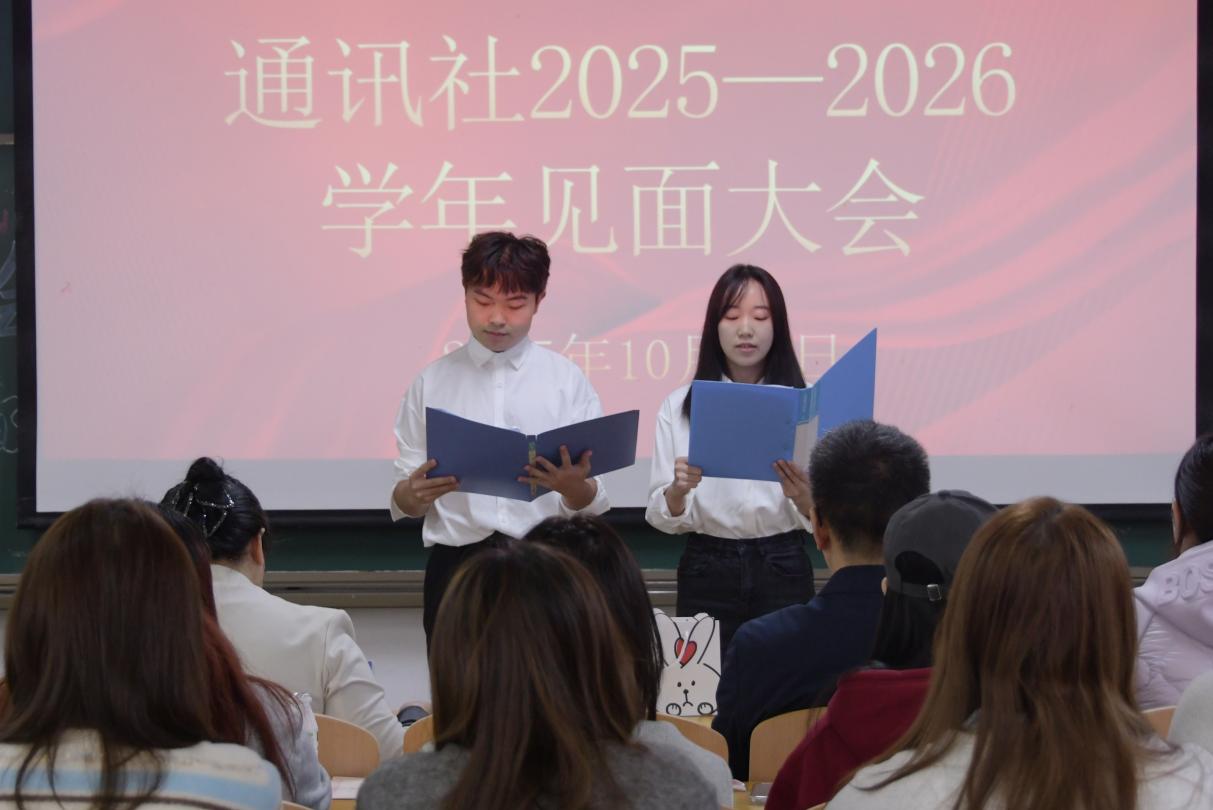 为进一步加强学院宣传队伍建设,凝聚青年传播力量,10月28日,学院通讯社召开新学年见面大会。学院院长邓旭升、党总支副书记蒋奉君、党总支副书记张倩、社团指导老师保阳及通讯社全体成员参会,大会由任艳红和董长爱主持。
