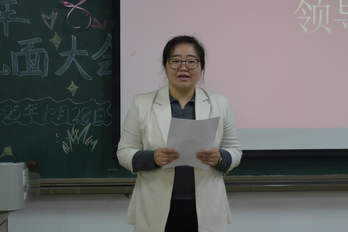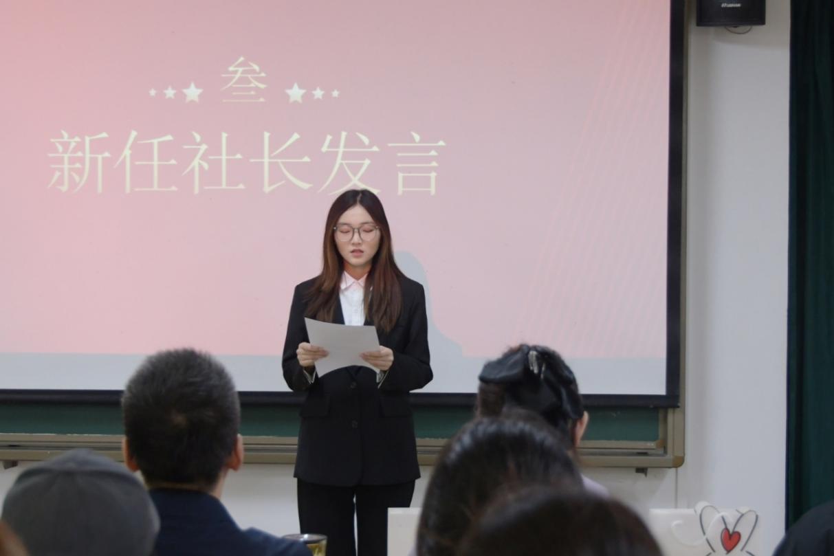 会上,蒋奉君致辞。她回顾了上一届通讯社的工作成绩,充分肯定通讯社在学院宣传工作中展现出的组织力与凝聚力。她指出,通讯社不仅是学院新闻报道的中坚力量,更是思想政治教育的重要阵地与学生实践成长的平台。她希望全体成员继续以责任和热情投入宣传工作,在文字与镜头中记录学院发展,在传播中凝聚奋进力量,让更多人听见“管院声音”、看见“师生风采”。