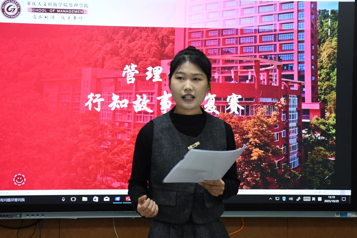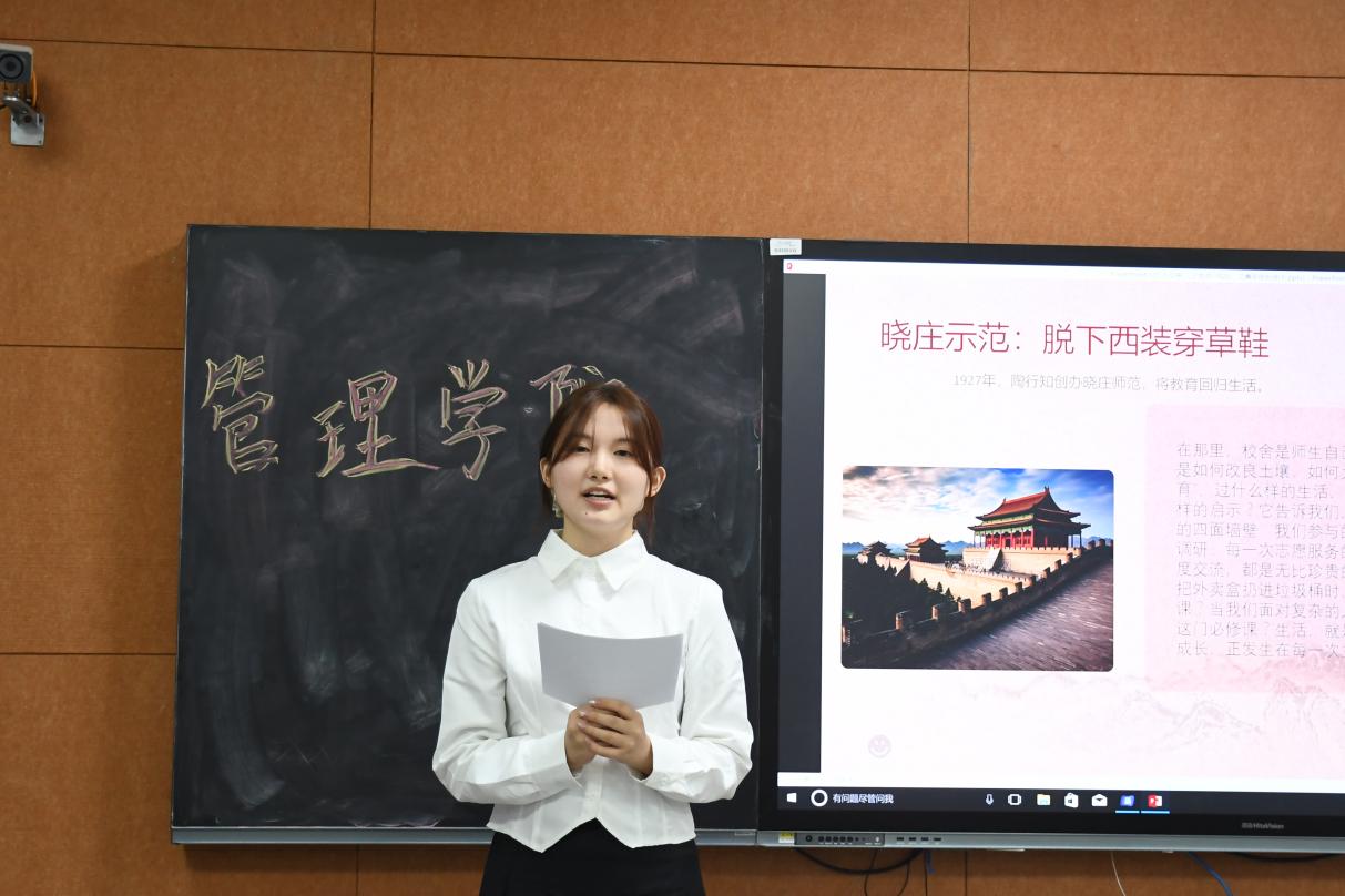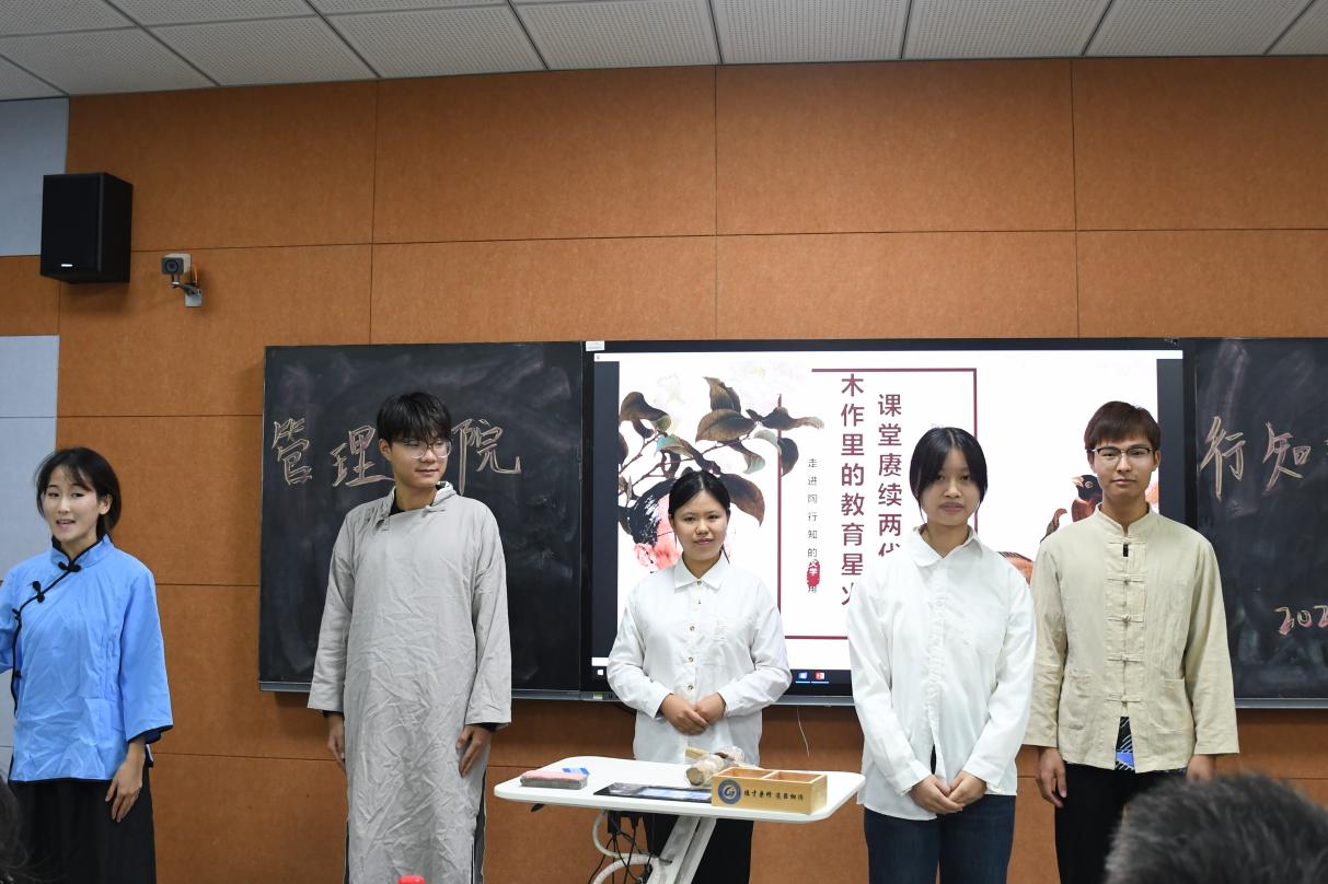 在点评环节,邓旭升院长对选手们的思想高度与表达能力给予充分肯定。他指出,陶行知教育思想的核心,是让“知”从书本中走向“行”的实践,是让“教育”回到“生活”的本真。行知精神的价值,在于用行动化解空谈、以实践滋养思想。他强调,管理学院始终以陶行知教育理念为精神坐标,致力于培育具备社会责任与创新能力的新时代青年。他勉励同学们在学习中常思“为何而学”、在实践中常问“为谁而行”,让“知行合一”成为青年成长的生命姿态,让“行知精神”在新时代焕发新光。