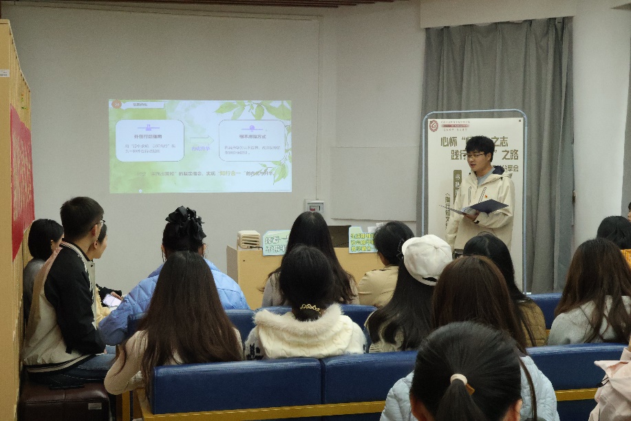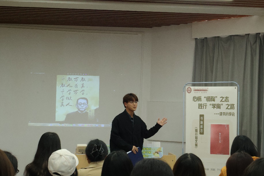 活动围绕“知行合一”理念,结合学生党员理论分享、宿舍文化建设与专业实践案例展开深入交流,来自不同组织的六位学生代表结合专业特色,分享了各自在实践中对陶行知教育精神的理解与运用: