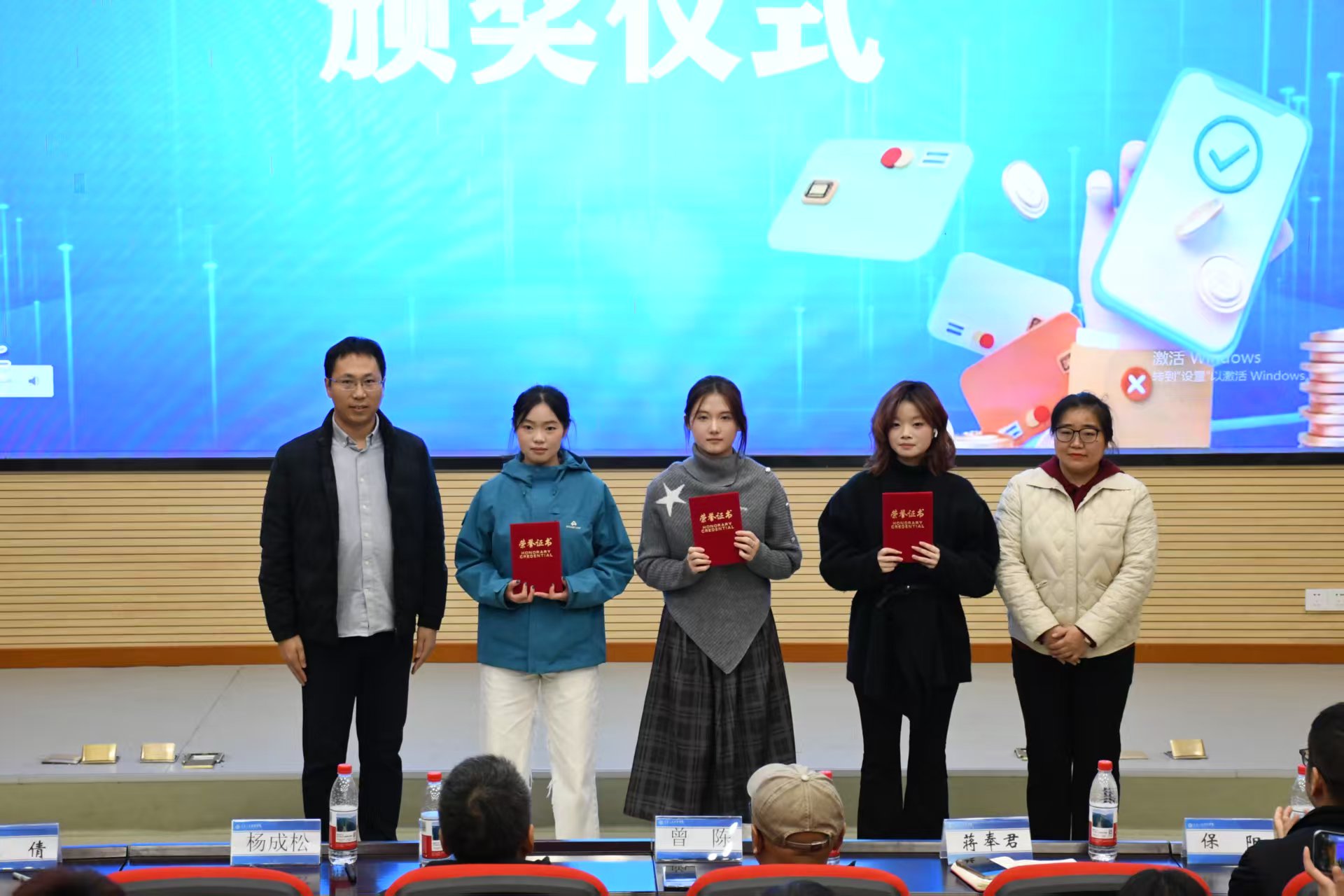 根据各组现场表现,经评委综合评审,作品《诈中有诈》荣获一等奖;作品《兼职“高薪”藏猫腻?黄牛“卖票”有玄机》《通话里的双重诈骗》荣获二等奖;作品《客服的陷阱》《小礼品的“温柔陷阱”》《一次无心扫码,一场精心骗局》荣获三等奖;作品《最后一次转账》《宿舍淘金案,学姐竟是诈骗犯》《一声救急,AI设局》《网络赌博诈骗》荣获优秀奖。评委嘉宾为获奖队伍颁发荣誉证书并合影留念。