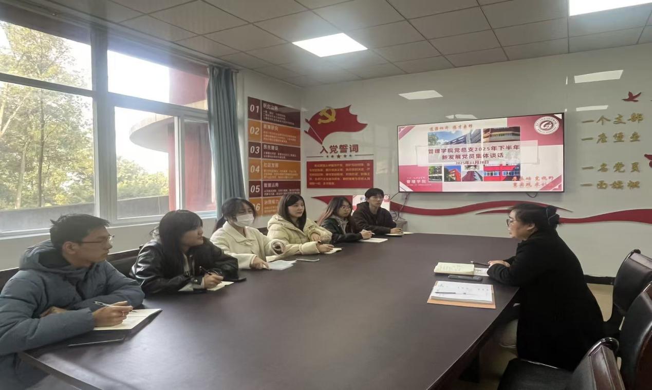 为进一步提升党员发展质量,密切学院党总支与各党支部及新发展党员的联系,加强新发展党员教育管理,引导新发展党员坚定理想信念、强化责任担当,11月28日下午,管理学院党于10212会议室开展2025年下半年新发展党员集体谈话会,为新发展党员扣好入党后“第一粒扣子”。党总支副书记蒋奉君、专职组织员黄梦菲参加此次谈话。