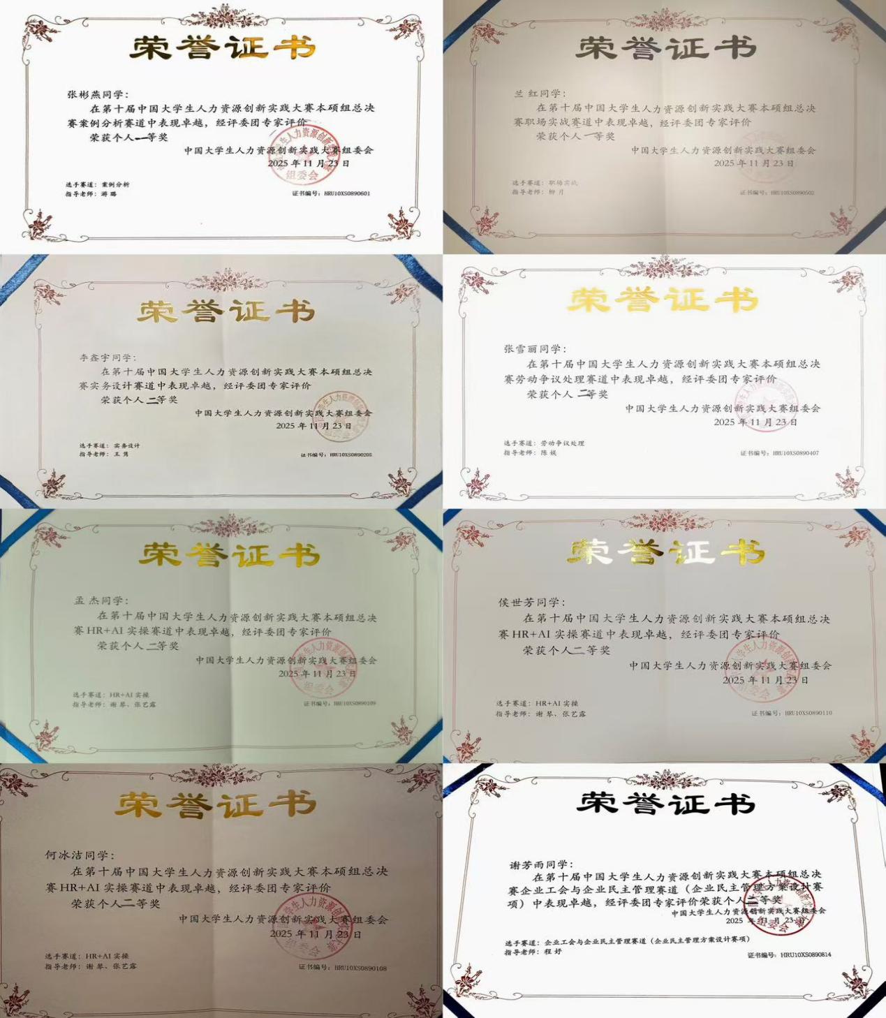 本次优异成绩,是管理学院深化专业建设、强化实践教学改革的集中体现。学院紧扣人力资源行业的数智化发展趋势,构建由骨干教师组成的专业指导团队,将竞赛要求融入平时教学,通过案例研讨、数字化实操训练、模拟情境设计等教学方式,不断提升学生的问题分析能力与创新能力。参赛学子在备赛过程中专注打磨方案,将人才测评、薪酬绩效、劳动关系管理、AI赋能HR等前沿议题融入作品,充分展示了管理学院学生扎实的专业功底与面向未来的行业视角。