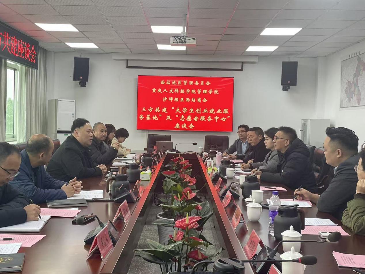 为贯彻落实党的二十届三中全会关于“加快构建职普融通、产教融合的教育体系”精神,推动学校基层教学组织深度嵌入产业一线,12月9日下午,重庆火车西站地区管理委员会、沙坪坝区西站商会与管理学院联合召开专题座谈会。三方以共建“大学生创业就业服务基地”和“志愿者服务中心”为抓手,同步启动“把教研室建在企业上”的创新实践,为人才培养模式改革和区域高质量发展注入新的动能。