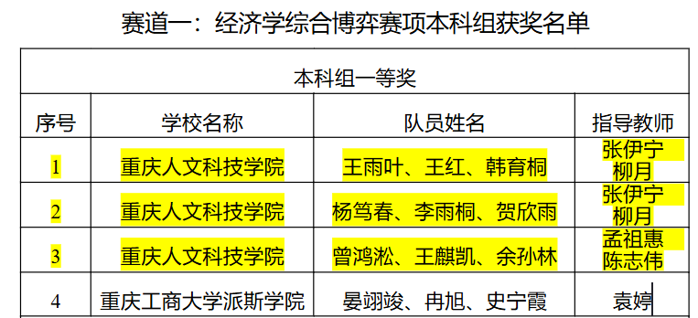 赛道四:绿色经济经营决策赛项本科组获奖名单