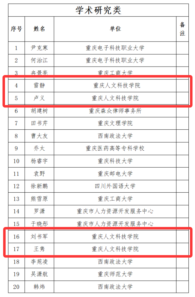 【喜报】学院四名教师入选重庆市人力资源服务业领军人才培养计划